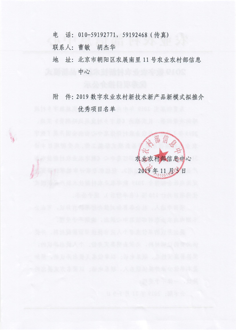 附件:《2019数字农业农村新技术新产品新模式优秀项目推介公示》